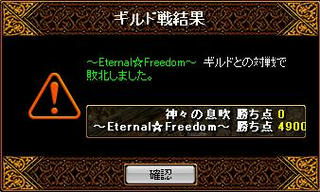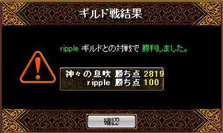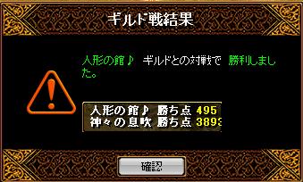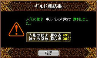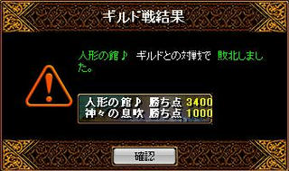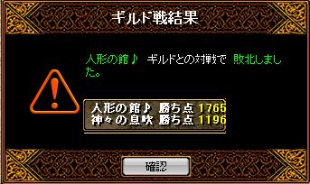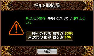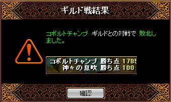 (。・ω・)ノ゙ コンチャ もうすぐ1月も終わりですねぇ ほんとうに月日が過ぎるのは、早いですねぇ なんかおじいちゃんみたい( ´ω`)。o 0 お、それからもうすぐこのブログHIT1万行きそうですね^^ これも皆さんのおかげ! 1万HITを踏むのは誰ですかね( ´艸`) ムププ ( ・・)つ【RSネタ】 Gv結果 敗北orz 人数差もあってこちらが10分もたたず全滅orz コボ戦だと人数が少ないorz 敗北orz 人数は同じくらいでしたが攻め切れませんでしたね>< 明日はリベンジだ! 敗北orz リベンジならず>< 参加が↑になってくれましたが低Lvさんが的に>< 次こそは再度リベンジb 勝利♪ 危ないところでしたがなんとか勝利 なるべく固まって動こうね^^ 対戦してくださったG様ありがとうございました♪ ◆ネタ終了のお知らせ ...ρ(。。、) というのはいつもなので今日は魔法さんから送られてきたバトンをやっちゃいましたw 長いので暇な人だけ↓をクリックw ~ バトン (長くて面倒なバ・ト・ン) ~ では本日は以上で^^ノシ 神々の息吹Gメンへ 現在決まっているGv時間です。 最低は22:00にGvはいりますのでそれまでに時間の確認をお願いします。 -------------------------------------------------------- 0 金曜(30日) 【華と花】 → Gv時間 22:15 0 日曜(2月1日) 【LeBrigateRosse】 → 待合時間 後日相談 0 火曜(3日) 【異次元の世界】 → 待合時間 18:00 0 水曜(4日) 【Eternal☆Freedom】 → 待合時間 後日相談 -------------------------------------------------------- ※待合時間はGM同士が集まる時間です。Gv開始時間とは異なります。 日曜日のLBRとの対戦はレイさん(LBR)引退戦の為イベントGvとします。 詳しくは当日までに打ち合わせしておくのでそのつもりで。 ~ドロップ~ 特になし |
